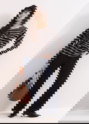 It's your failsafe striped top, with a difference. The Binky style is designed with a textured fabric and a playful peplum hem for added interest.
