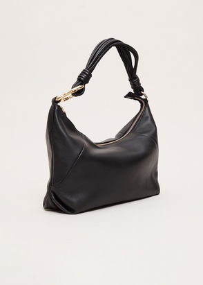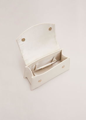 Designed with a luxe satin style finish, our smart black clutch bag has a knot detail at the front and is finished with a metallic chain strap. It's lined inside with a separate compartment, and fastens with a clasp closure. Matching shoes available.