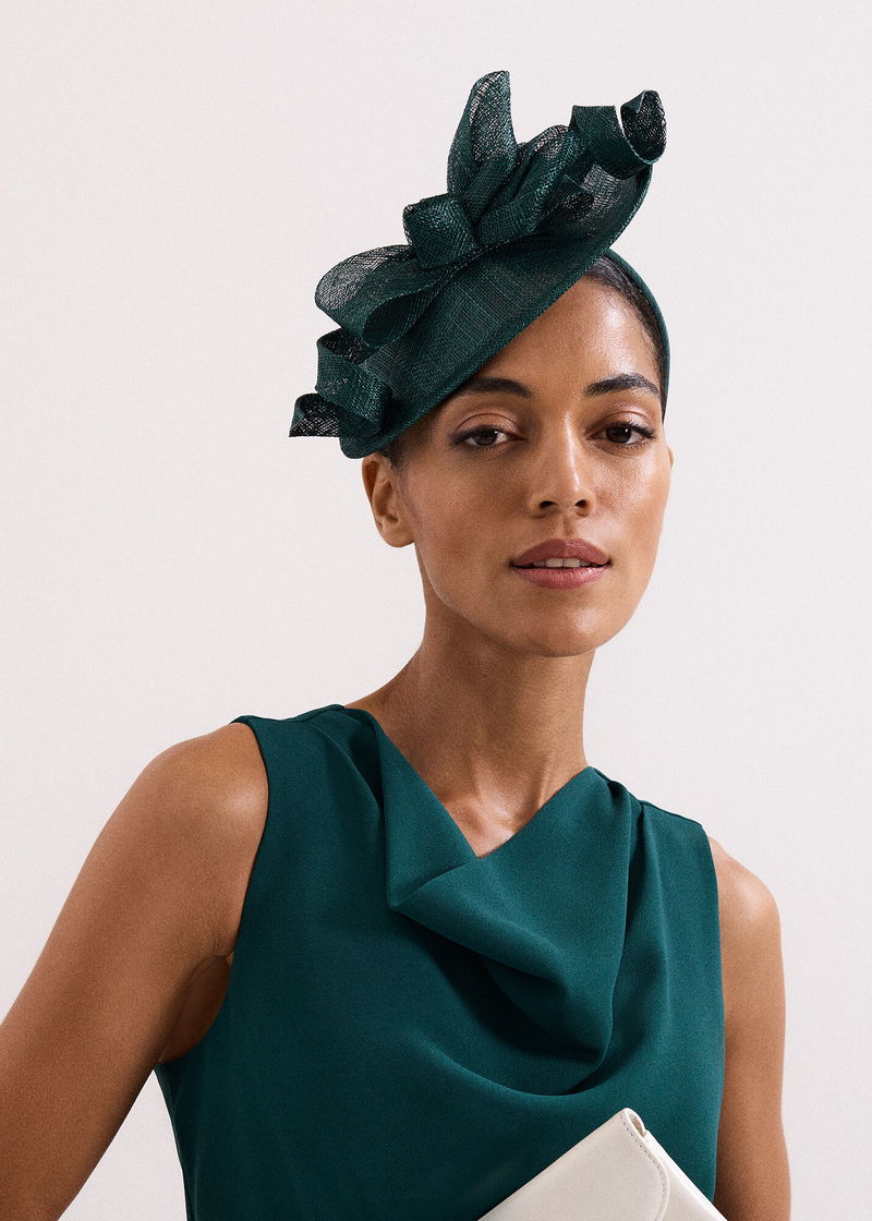 fit The perfect accessory to add to your event collection. Designed in a luxe teal shade, this statement bow disc fascinator is finished with a boldly feminine bow applique. Pair with matching heels and clutch for a coordinated look.