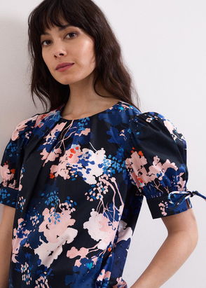 Our vibrant abstract print Brooke top will instantly refresh your wardrobe. This versatile style is framed by ruched sleeves and a classic boat neckline for a feminine touch. Wear with trousers or jeans to update any casual look.