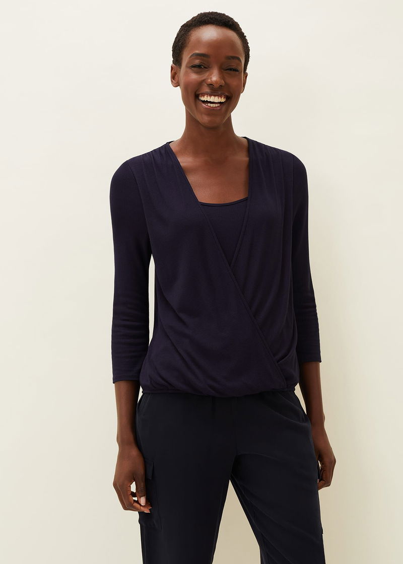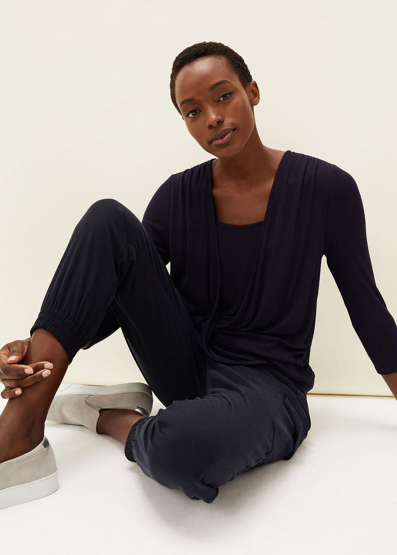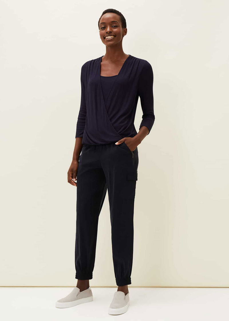 Effortlessly stylish, our Caitie wrap top is cut from super soft jersey fabric and will make a relaxed yet feminine addition to your new season wardrobe. We've paired ours with loungewear joggers for a comfortable yet chic look.