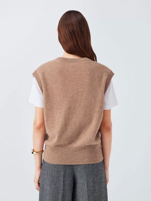 Designed in a neutral shade our knitted vest styles effortlessly over your favourite top and is perfect for colder days to offer a classic, chic look. Pair with our knitted camel beanie for a coordinated look.