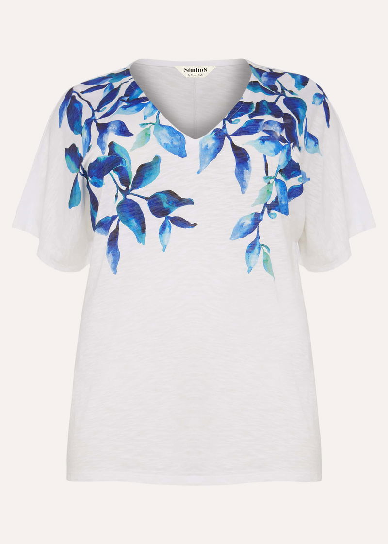 This style is responsibly sourced. Phase Eight is proud to invest in making cotton production more sustainable. Studio 8 by Phase Eight: Premium plus size style. An easy styling or layering piece, designed with a watercolour-inspired print highlighting the neckline.