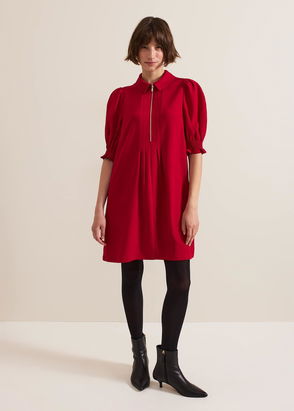The perfect dress for everyday wear. The Candice dress is designed in a deep burgundy shade and it's cut to a relaxed fit, featuring feminine frills at the sleeve cuffs and zip up detailing. Wear with black boots and a matching bag for the perfect Monday-to-Sunday look.