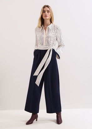 The perfect jumpsui you can reach for time and time again. Designed with a wrap bodice with pleated detailing, our jumpsuit falls to a navy wide leg silhouette. Wear with heels and a matching clutch.
