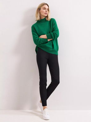 These smart black maternity trousers from Seraphine are a must-have for a working mum-to-be. Beautifully tailored in a premium suiting fabric with added stretch, they are cut to fit and flatter throughout your nine months. A discreet elasticated over-bump band fits seamlessly under your clothes, ensuring a comfortable, flexible fit. The slim cut lengthens and flatters your legs, and is finished off with smart pintuck detailing at the front and silky lined pockets for that professional polished look.