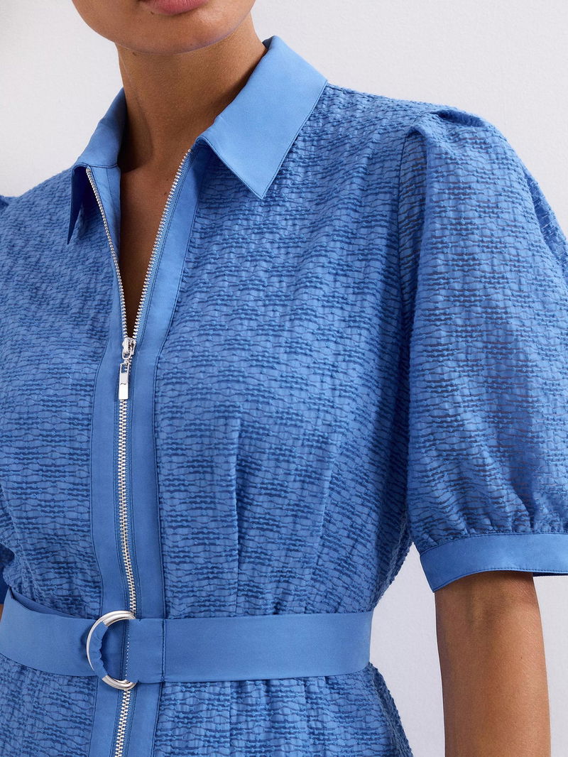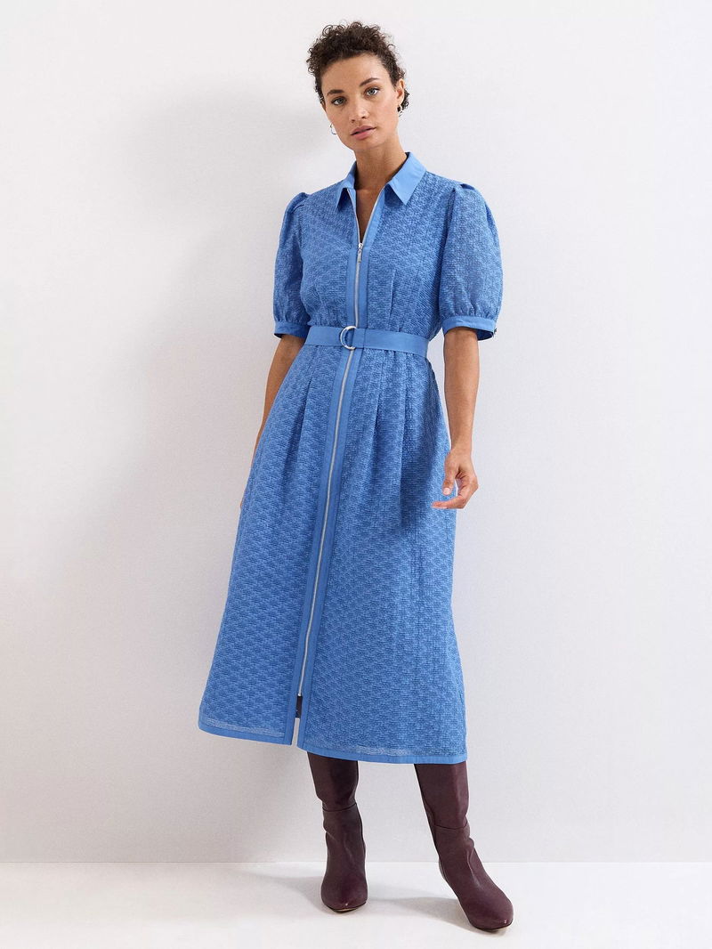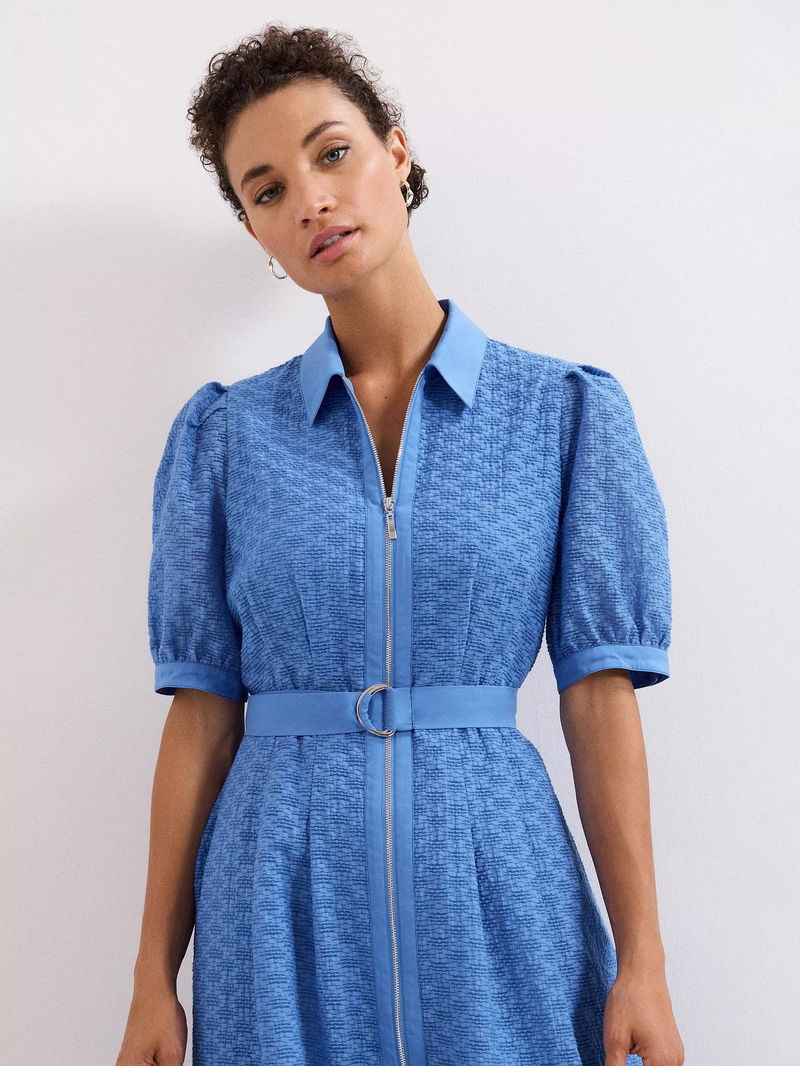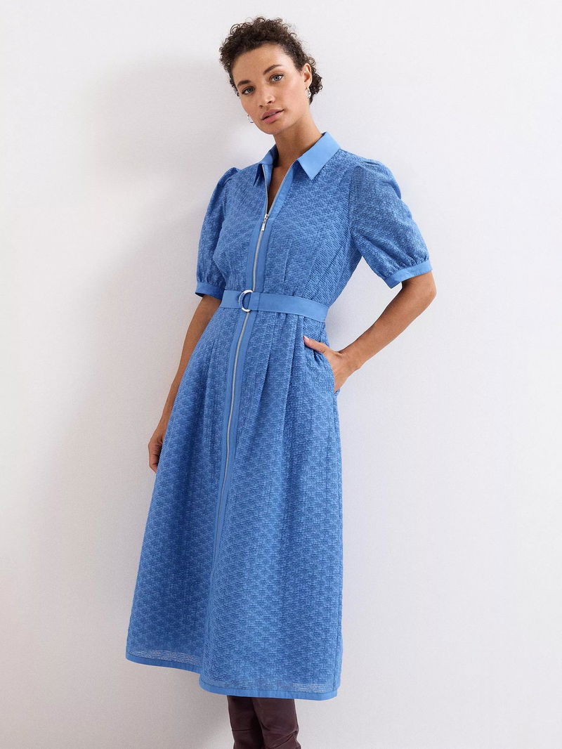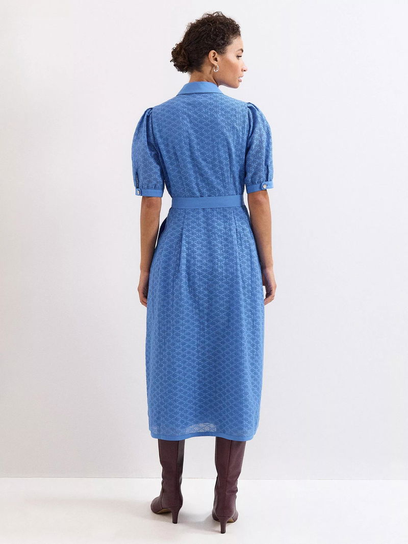 Button up in style. This short sleeved midi dress by Phase Eight is cut from a breathable cotton blend to a textured finish and is made neat by a collar neckline.