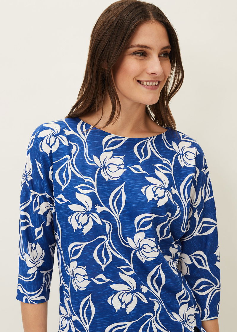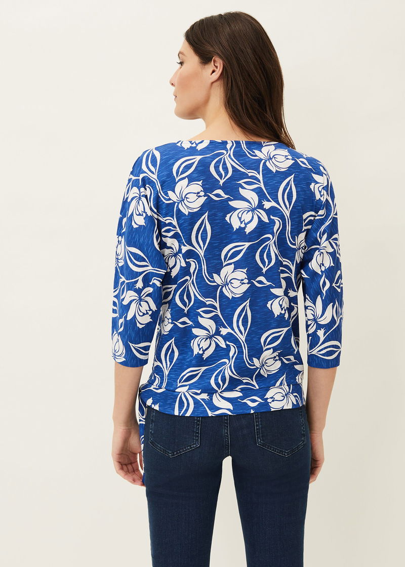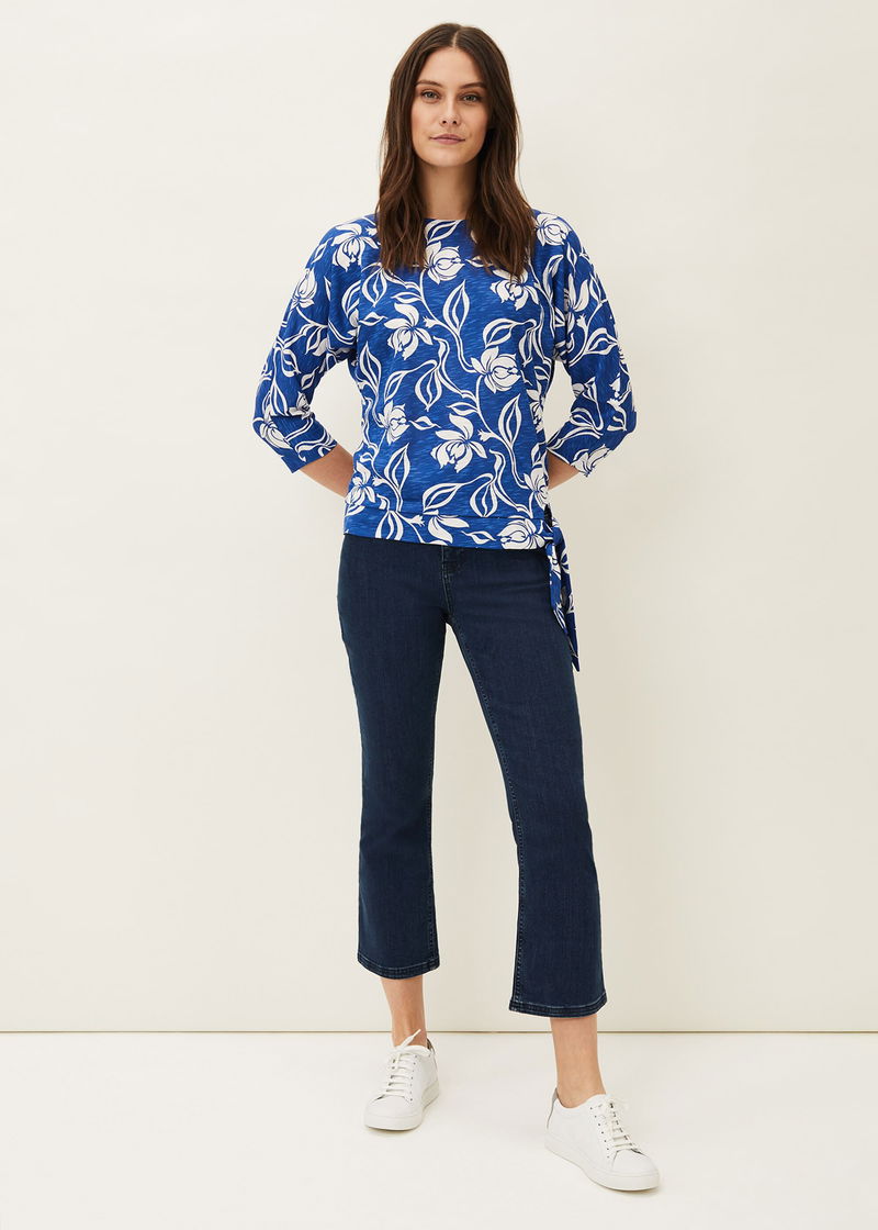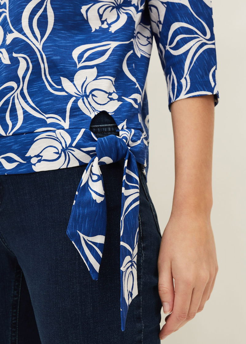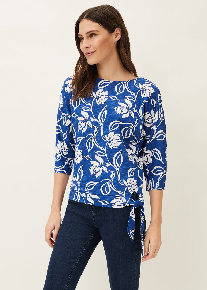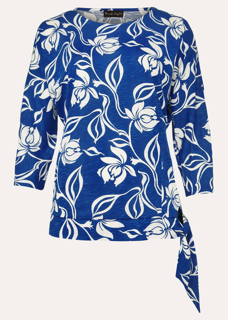 This floral jersey top is designed with a flattering tie side detail, which along with 3/4 length sleeves and a round neckline makes it effortless to wear.