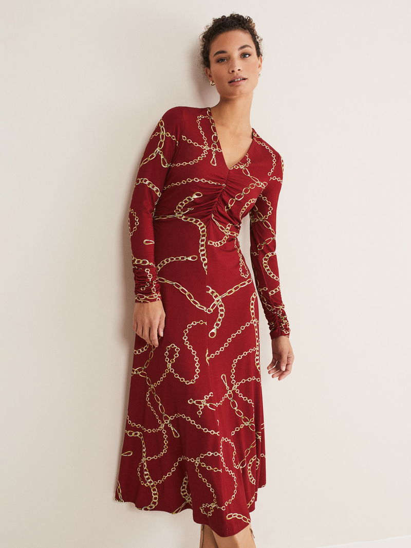Flaring out at the hem for a feminine silhouette, this midi dress by Phase Eight boasts a standout graphic print. With a flattering v-neckline and long sleeves, this piece is one to whip out at the weekend, from strolls in the city to Friday night out with the girls.