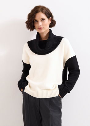 A colourblock knit to add to your capsule wardrobe. This white and green Cleo knitted jumper is designed with a relaxed fit and is styled perfectly with a pair of matching green trousers.