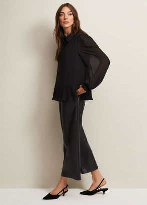 It’s the delicate ruffles and semi-sheer fabric that makes this blouse a romantic style to add to your new season wardrobe. Designed in black that you’ll reach for time and time again our blouse features silver sparkle detailing that adds a touch of glamour, perfect to pair with your favourite separates and heels for an evening look.