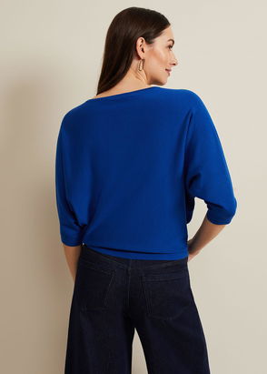 A relaxed fit fine knit jumper designed with batwing 3/4 length sleeves and a slash neckline. Perfect to wear with jeans.