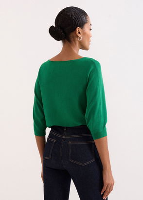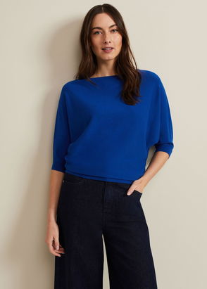 A relaxed fit fine knit jumper designed with batwing 3/4 length sleeves and a slash neckline. Perfect to wear with jeans.