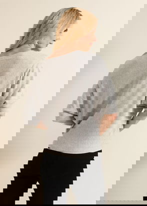 This cotton-blend knit features modern eyelet detailing scattered on the 3/4 length sleeves.