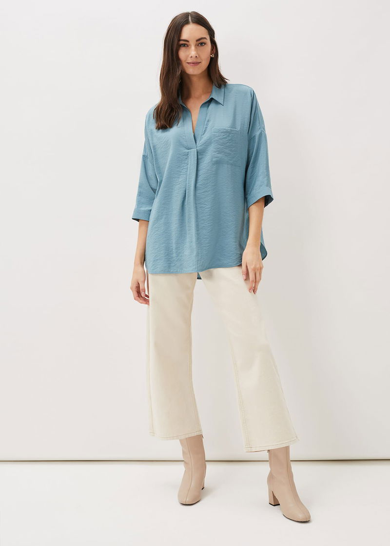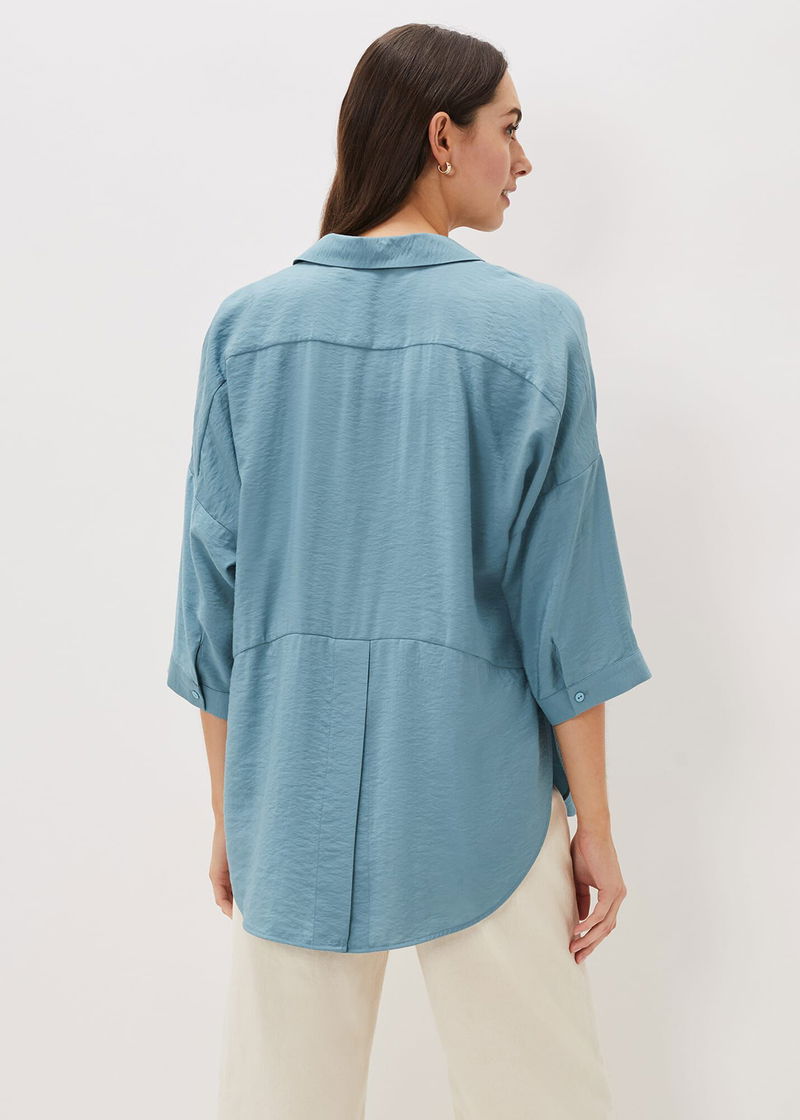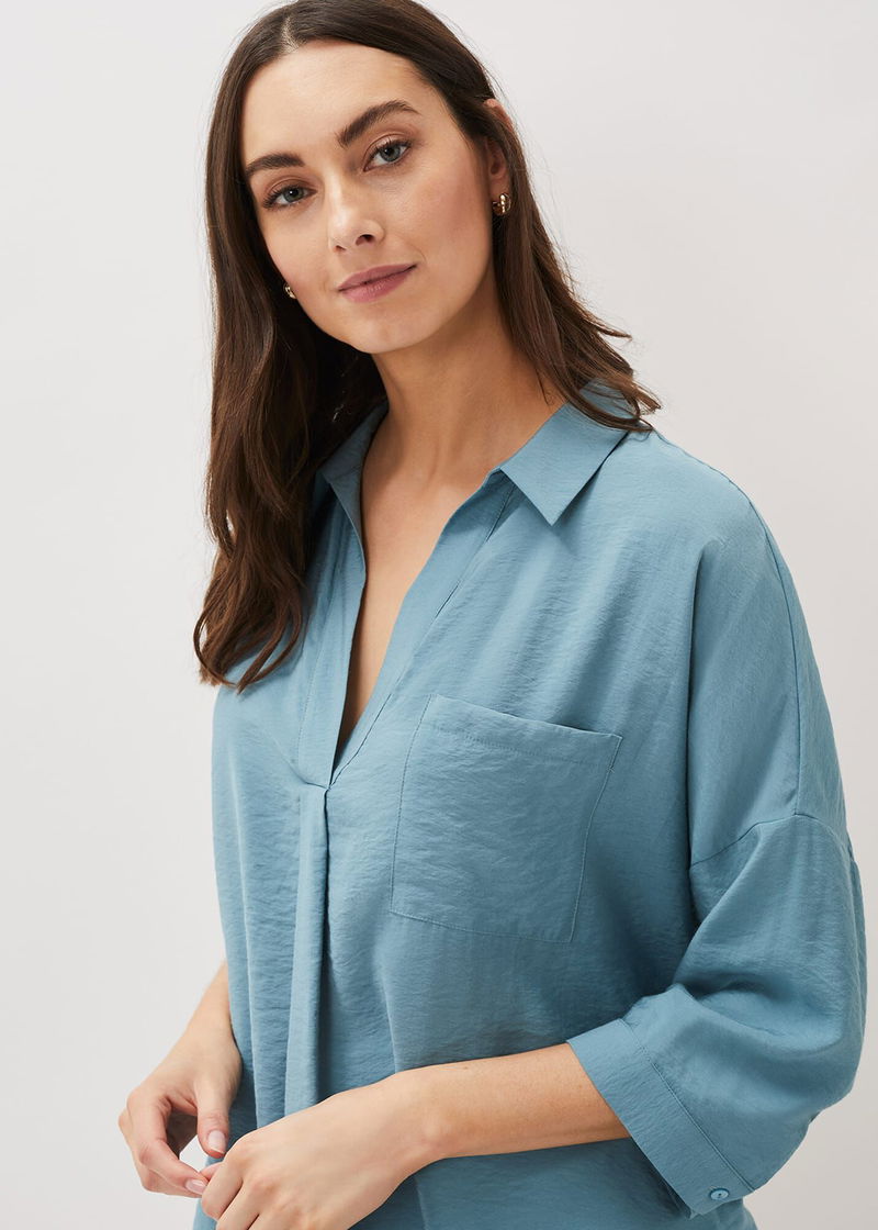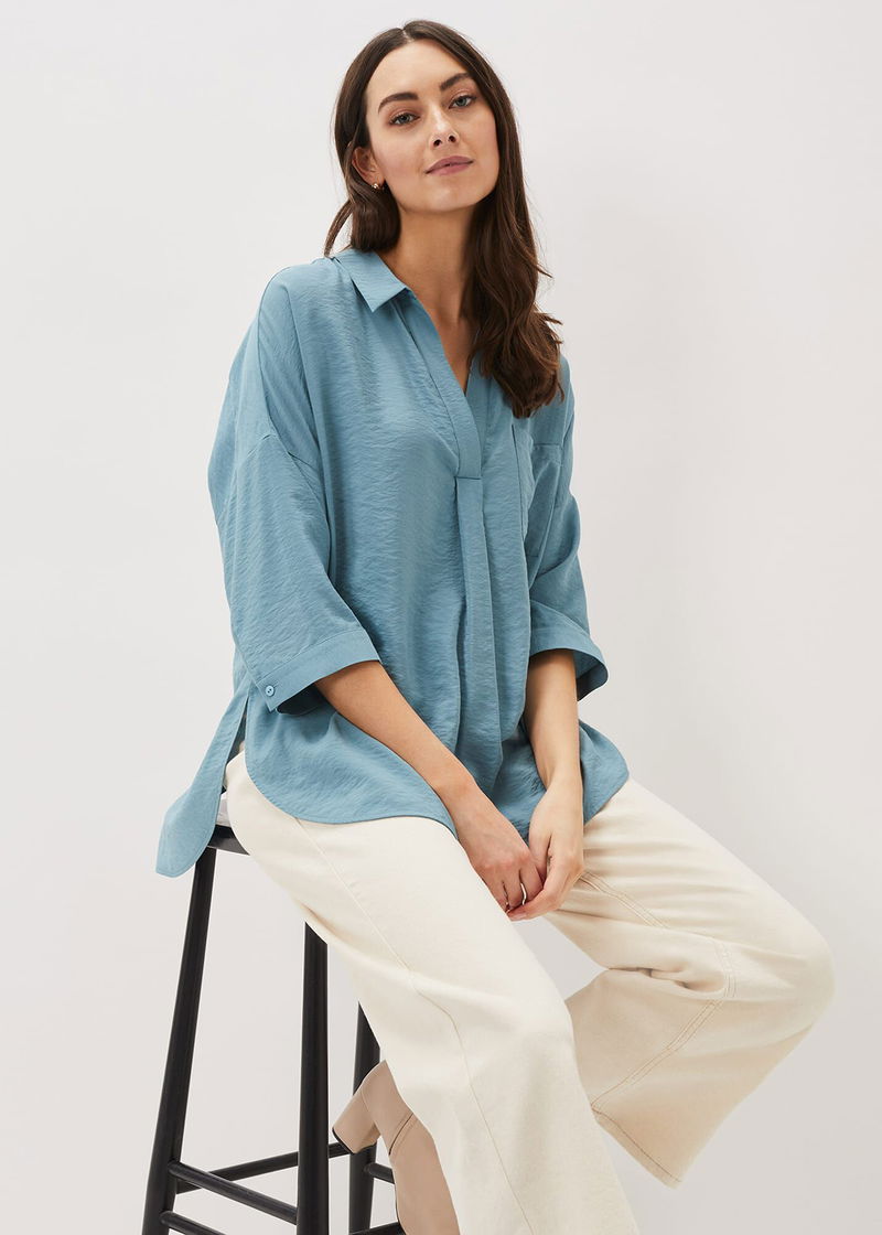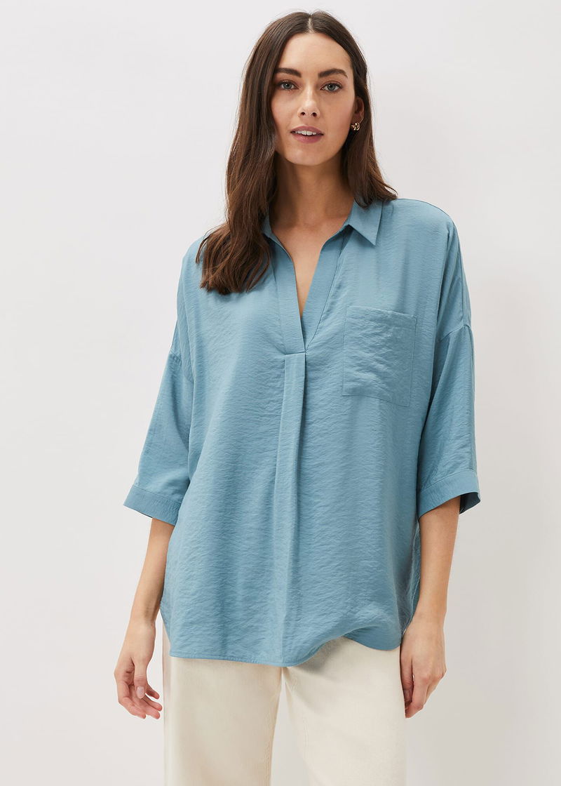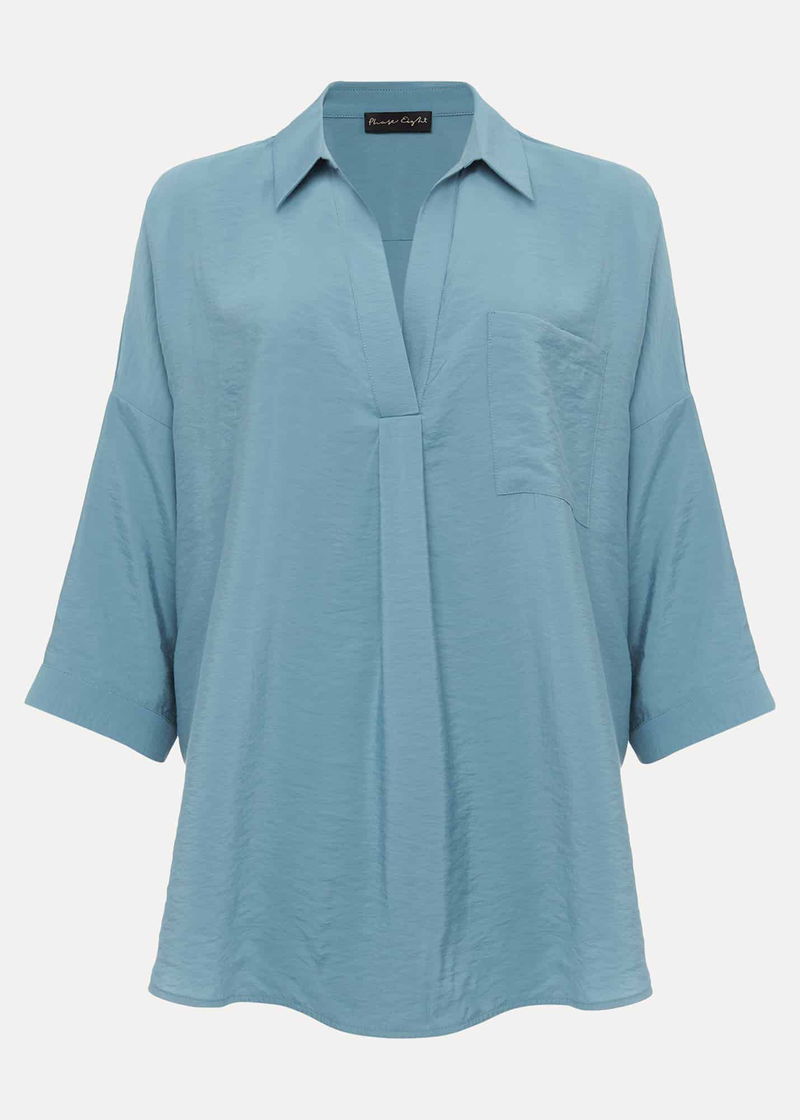 Relaxed in fit and versatile in style, our Cynthia blouse will offer endless outfit options to you this season. Designed in a beautiful sage green shade, this style is finished with a modern drop hem and an inverted pleat and patch pocket at the front.