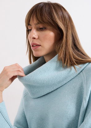 A must-have for your autumn/winter wardrobe. Our Dahlie jumper dress is designed with a chunky cowl neck and balloon sleeves and can be paired with just about anything you have in your wardrobe. We're keeping our outfit simple with denim jeans to let this knitted style take centre stage.