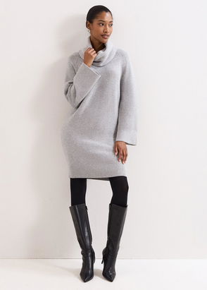 Invest in a wardrobe staple with our chunky knitted dress. Crafted in a ribbed texture with gold metallic thread detailing, our dress features balloon sleeves and a chunky roll neck to create a chic mini style. Pair with your favourite boots for an elevated everyday style.
