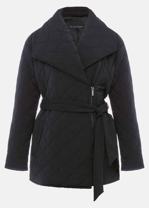 This puffer jacket features classic quilted padding on the bodice and sleeves, plus a ruched belt with metallic buckle for extra waist definition. It is finished with zip and popper fastenings, zip pockets and a removable faux fur collar for even more warmth.