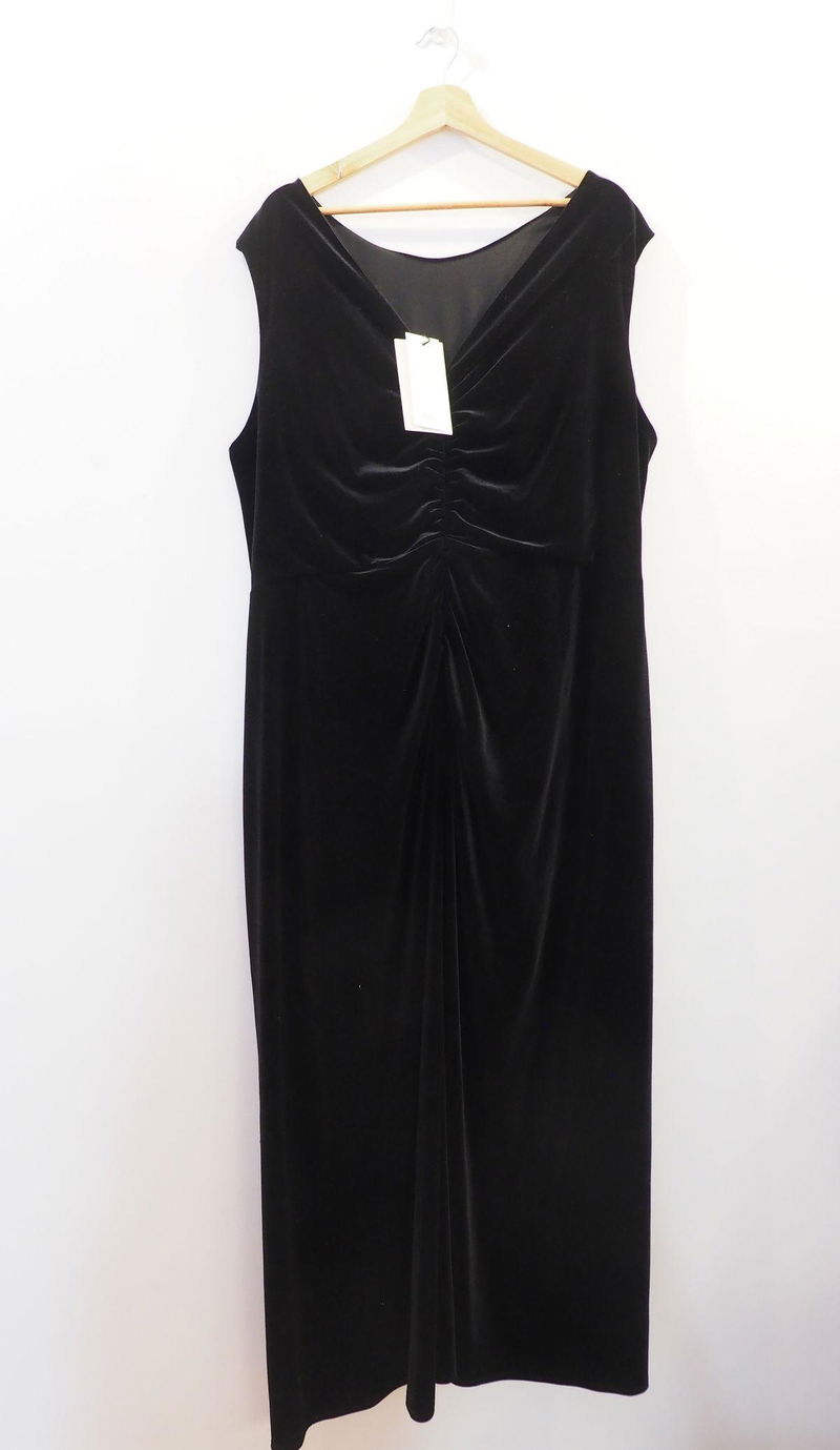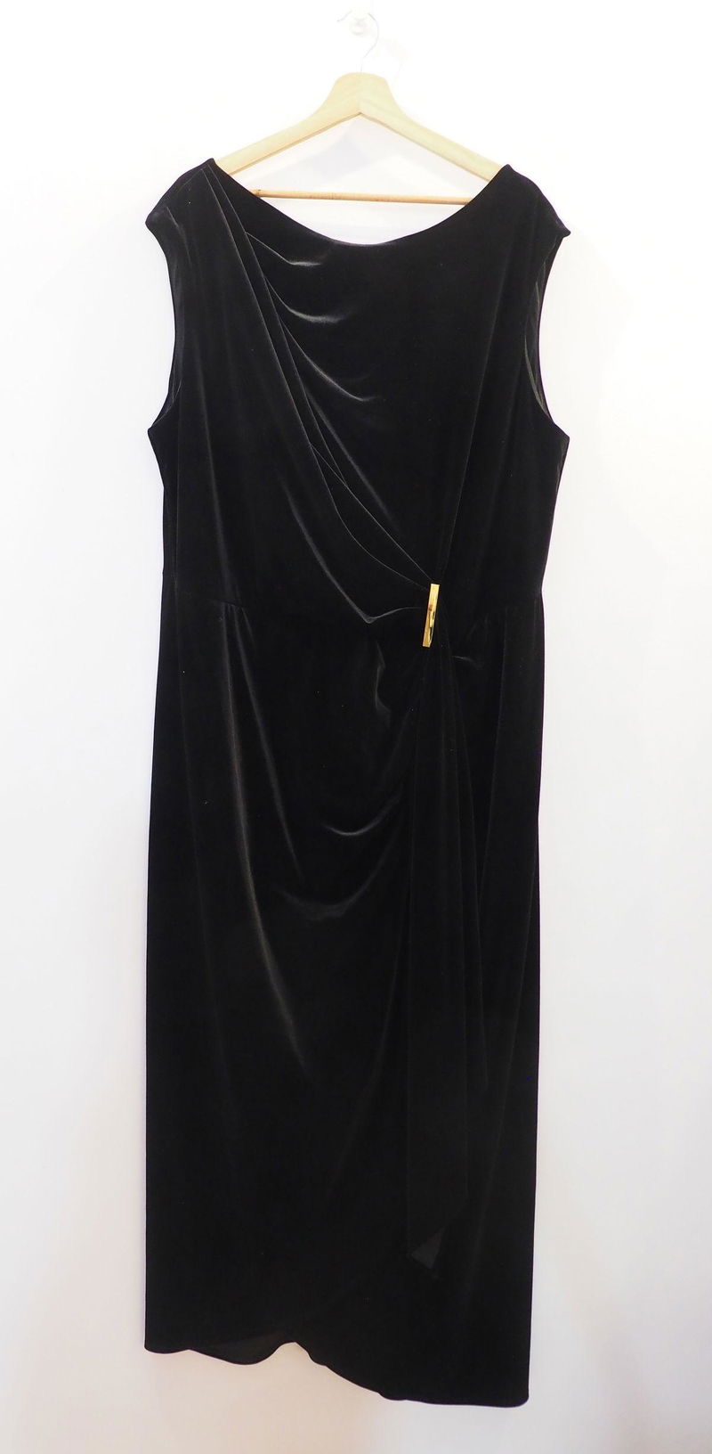 The velvet Donna dress is the perfect elegant style to wear to your next event. Cut to a wrap style with an open back, ruched detailing and a gold accent.