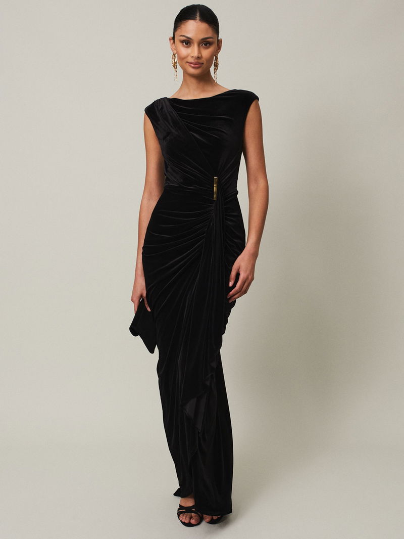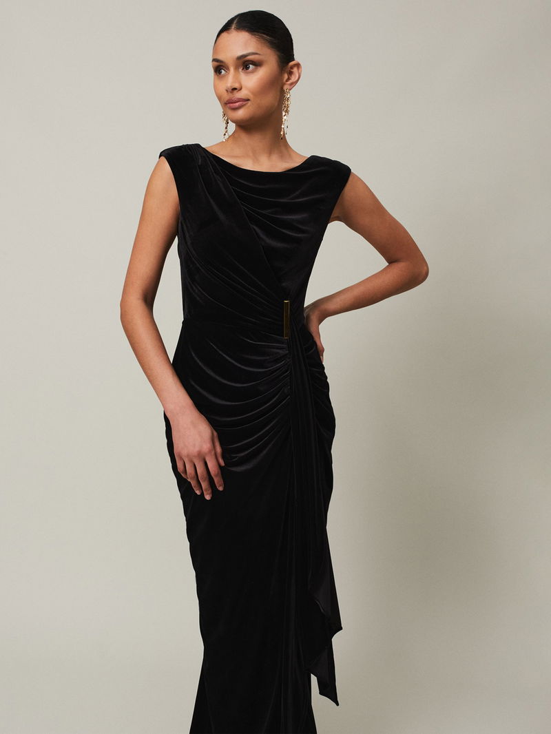 Offered in a timelessly flattering wrap style, this floor-length dress from Phase Eight is made from a resilient fabric. Carved with a round neck, this sleeveless style allows you to showcase its versatility.