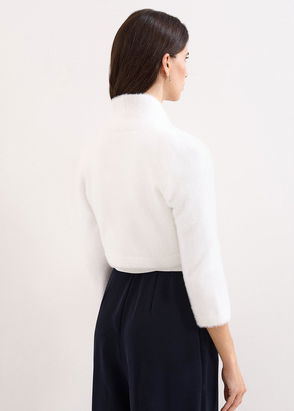 An open front bolero with a curved open front and cropped sleeves. We're wearing ours over the Sindy Embroidered Dress to bring out the jade hues.