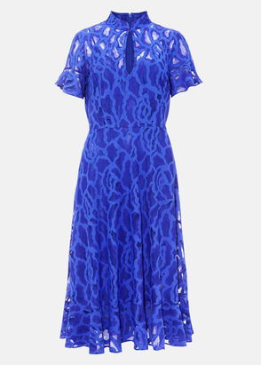 This fitted occasion dress is designed with a contrast lace bodice and semi-sheer sleeves. A romantic and elegant choice for the Mother of the Bride or Groom, style this below the knee style with a matching jacket and fascinator for a memorable occasion outfit. Fully lined with a concealed centre back zip, and a slit at the skirt for ease of wear.