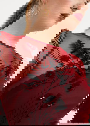 With beautiful all-over floral embroidery, this floor-length column dress features a front split in the skirt and keyhole detail at the neckline. A contrast waistband and front and back seams ensure a very flattering silhouette and semi-sheer sleeves along with the embellished collar give it a wonderfully elegant finish. The perfect style for making a statement at any black tie event. It is fully lined and fastens with a back zip.
