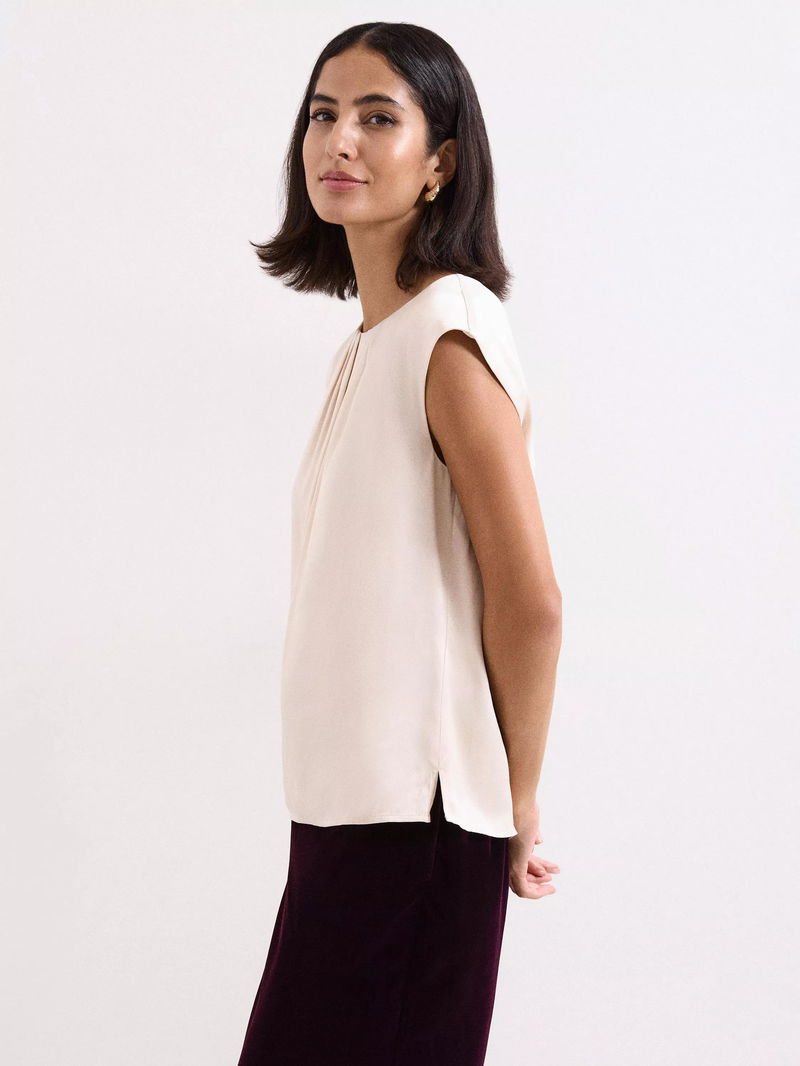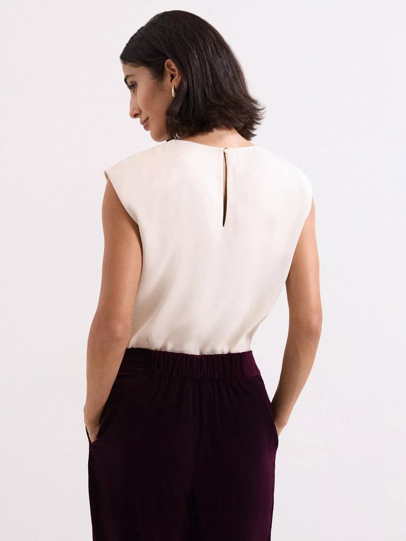 The perfect dress-up dress-down style that will take you through the seasons. This satin top features a contemporary ruched neckline and capped sleeves, making it the ultimate versatile piece. Pair with your favourite trousers for a smart but chic look.