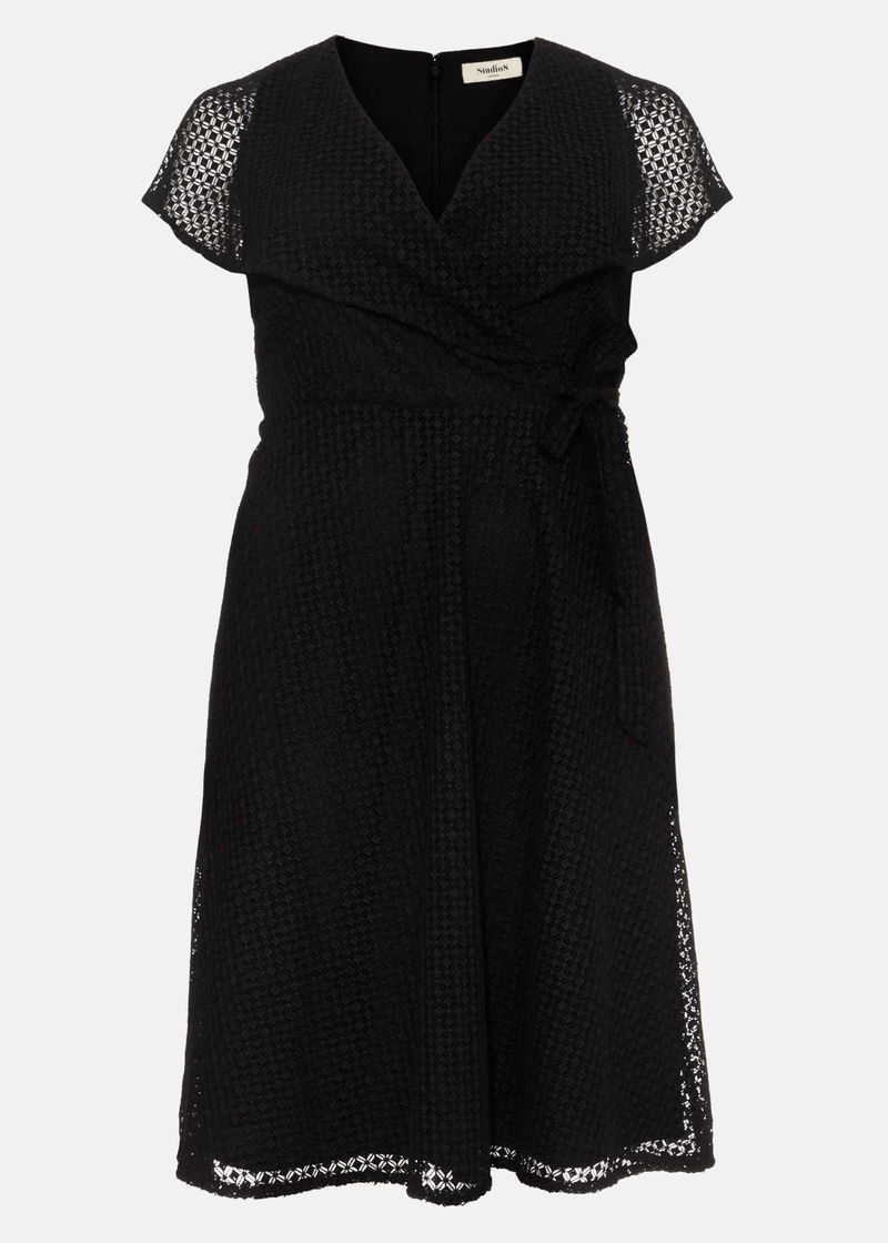 Studio 8 by Phase Eight: Premium plus size style. Phase Eight has given this little black dress an update with the geo lace overlay, most noticeable on the sheer sleeves. Perfect for cocktail parties, wear with heels and say no more.