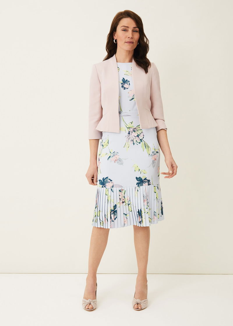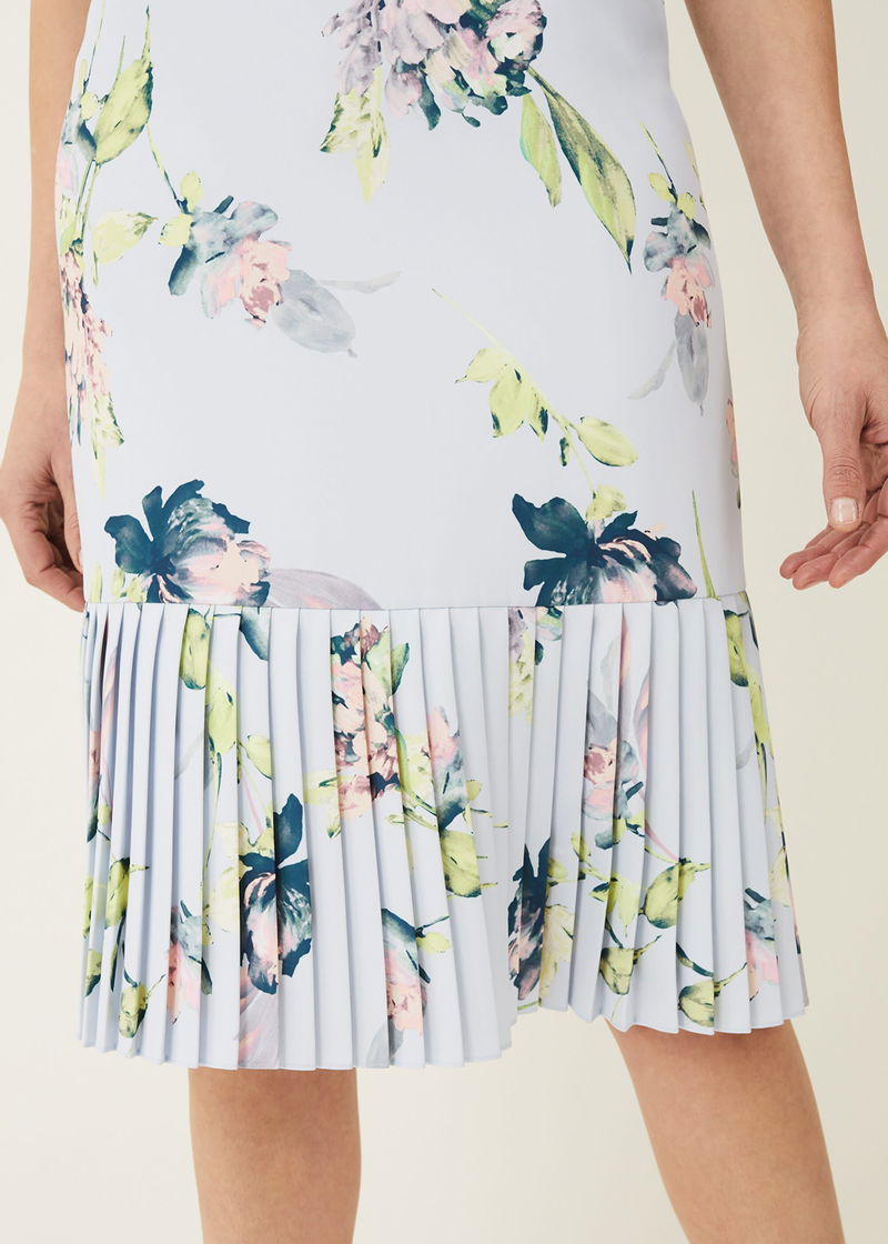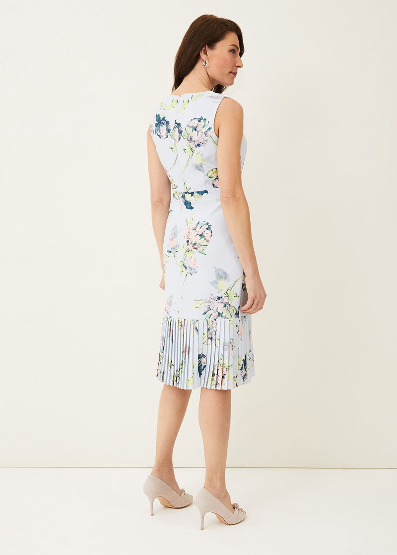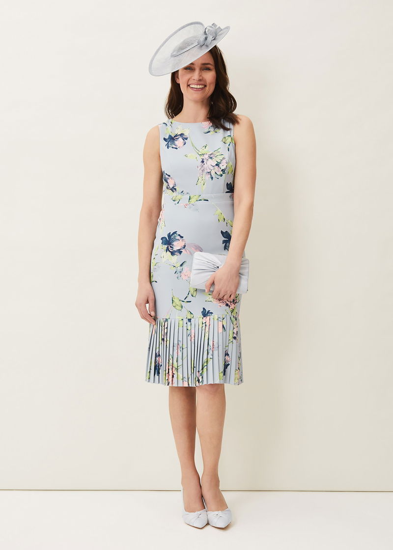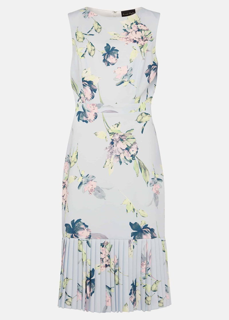 This effortless occasion dress is complemented by a beautiful floral print throughout. Cut in a fitted, sleeveless silhouette and finished with a contemporary pleated peplum hem.