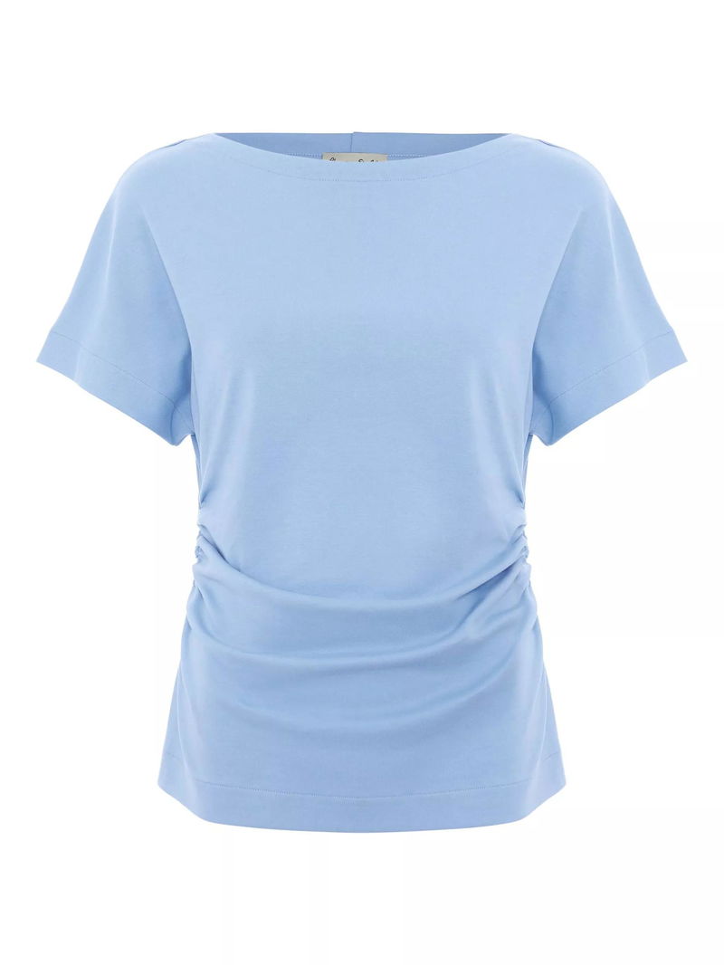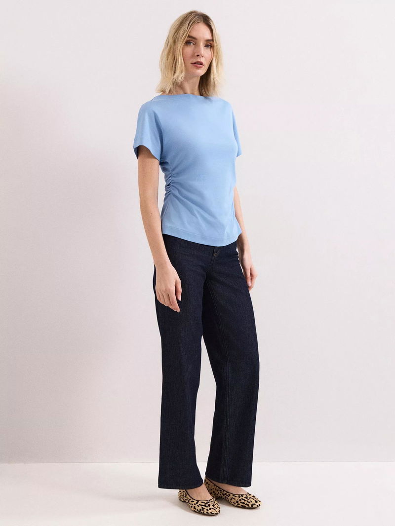 A ruched detail T-shirt from Phase Eight, made from a soft viscose blend. With a boat neck and short sleeves, it comes in a versatile, plain design that works as a foundation to every look.