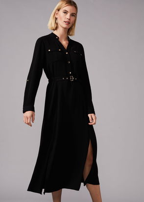 Wear this knee length tunic with tights and boots, or layer over trousers for a modern silhouette. This relaxed fit style has a collar and button placket, and is finished with patch pockets.