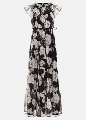 Embrace effortless style with this midi slip dress. Framed with a flattering boat neckline and sleeveless silhouette, the soft satin-feel material is enhanced with a minimalistic floral print that exudes sophistication. Perfect for weddings, holidays and special occasions, simply add your favourite heels for a timelessly feminine look.