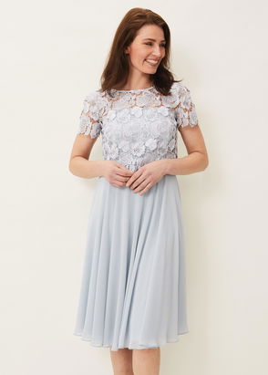 A modern take on floral lace, this party dress is one you'll wear again and again. Designed in a fitted silhouette with a thin waistband to enhance the silhouette, and cut out lace detailing at the neckline and hem. This style is fully lined with a concealed centre back zip.