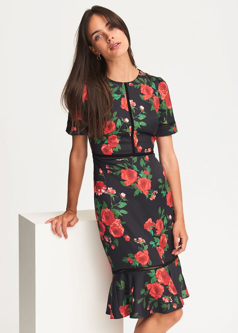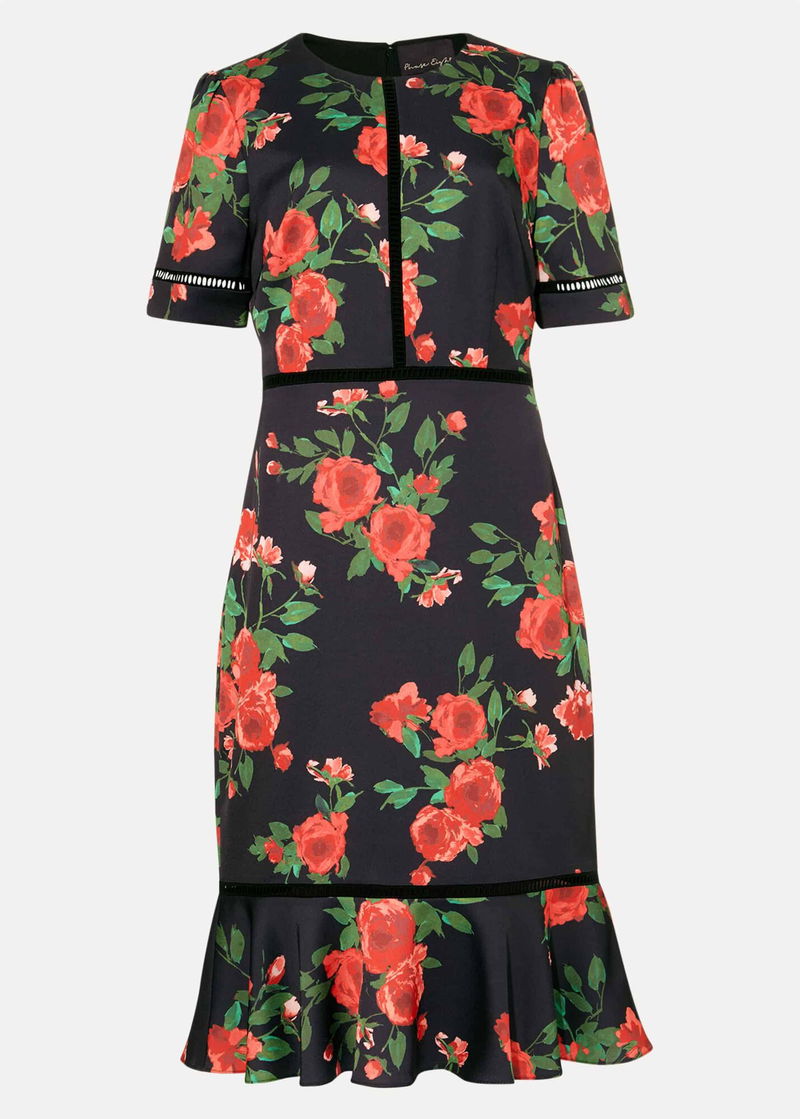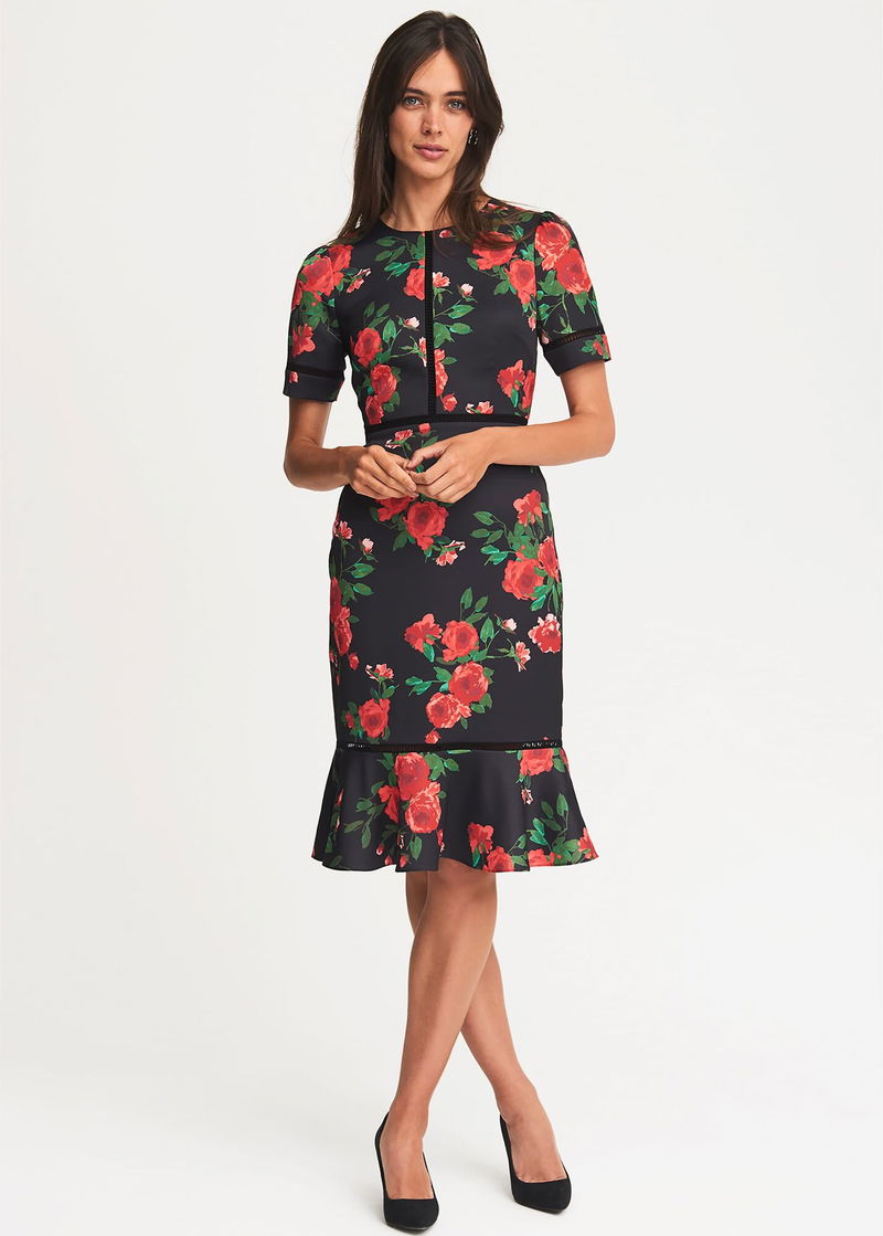 Ladder stitch detailing adds a contemporary finish to this classic floral dress. Occasion style doesn't get more effortless.