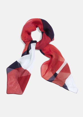 We love this colourblock scarf with its bright pops of colours. Wear yours over plain day separates or with printed outfits for an on-trend clashing patterns look.