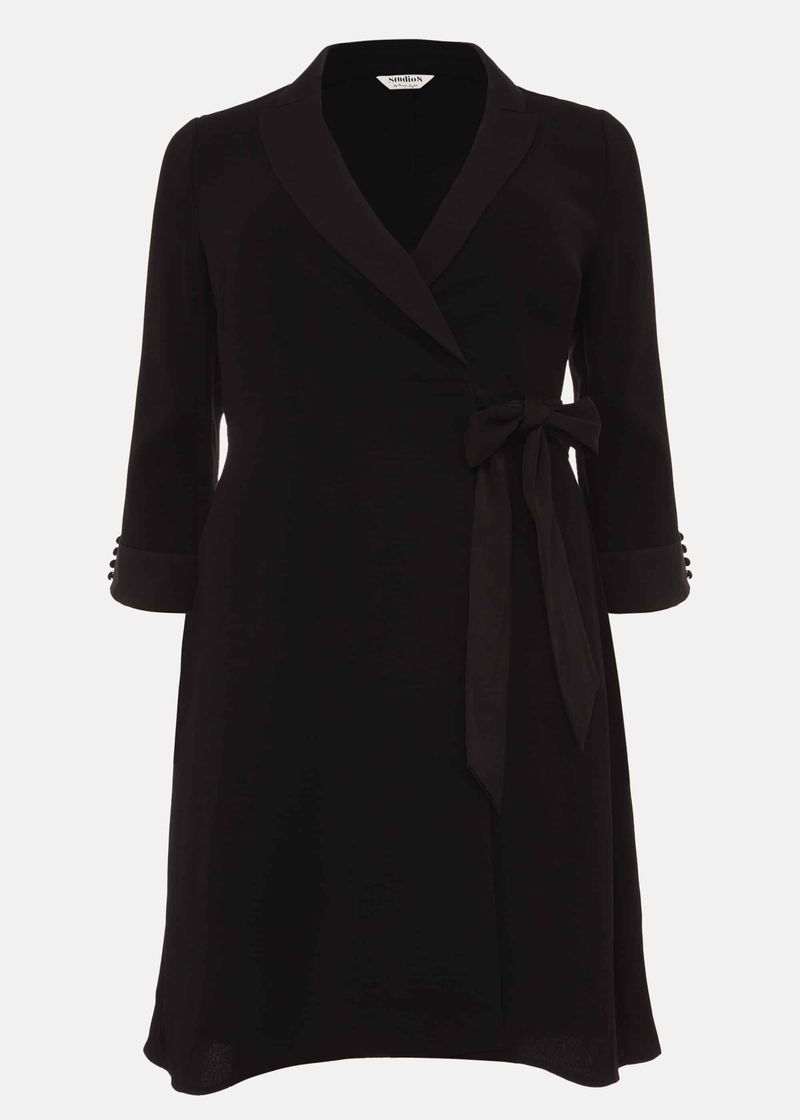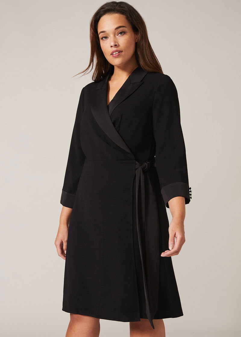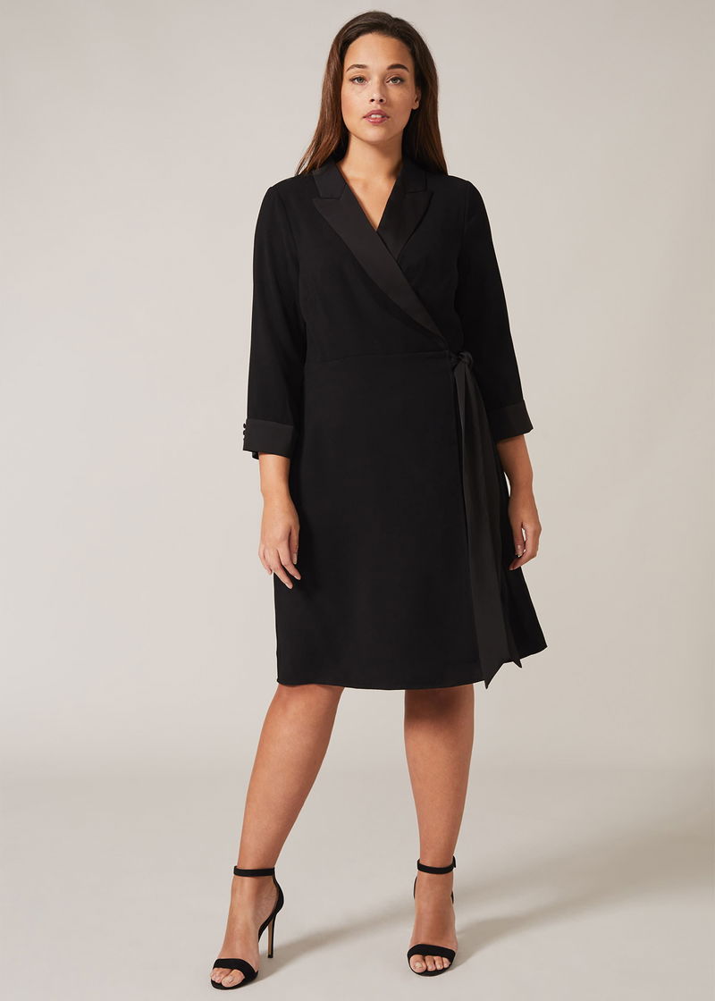 Studio 8 by Phase Eight: Premium plus size style. For an effortless going-out style, let us introduce you to our Iris Tuxedo Dress. Designed in a wrap silhouette with contrast lapels and cuffs, this dress needs only minimal jewellery to make maximum impact.