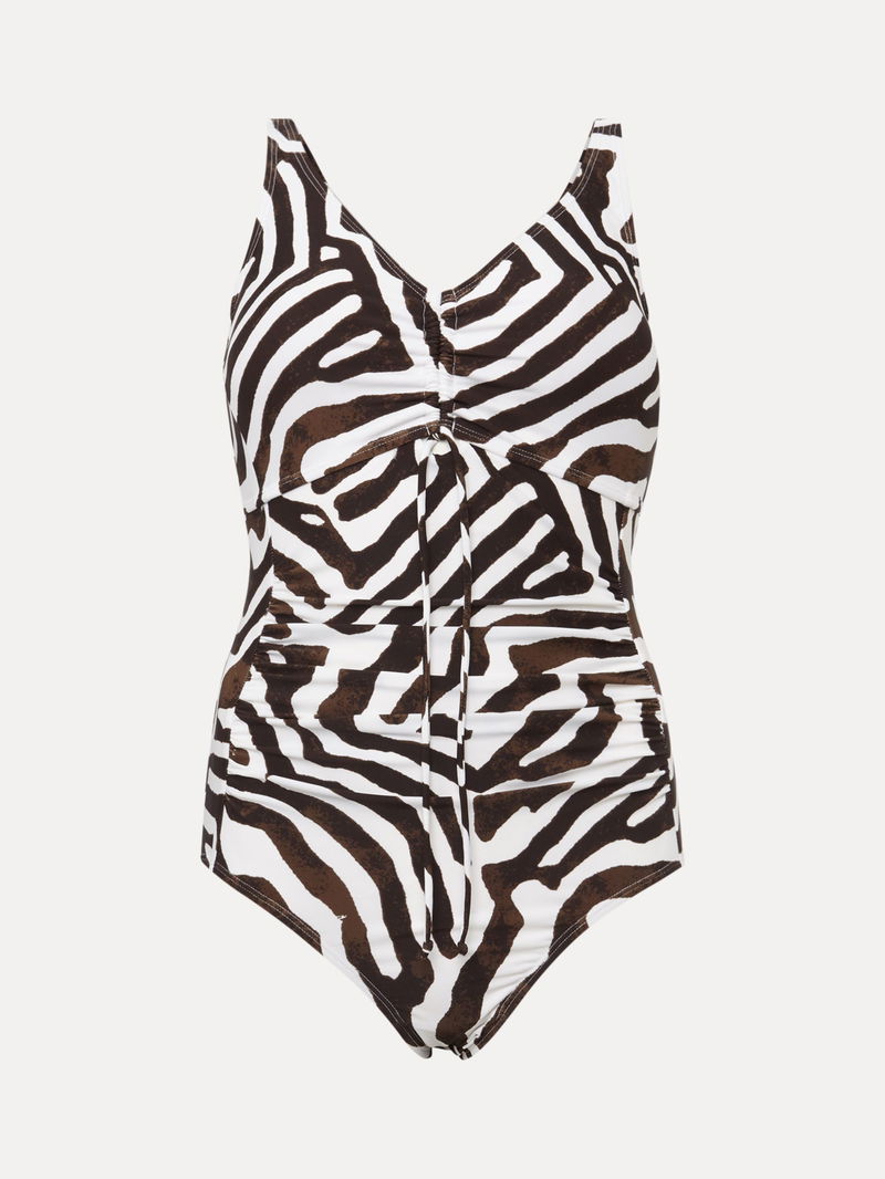 Swathed in zebra stripes, this swimming costume by Phase Eight is designed with flattering panelling, a drawstring detail at the V-neckline and a comfortable classic back.