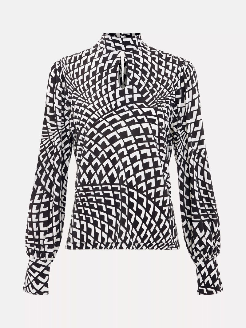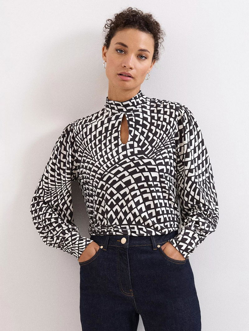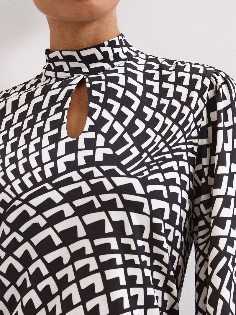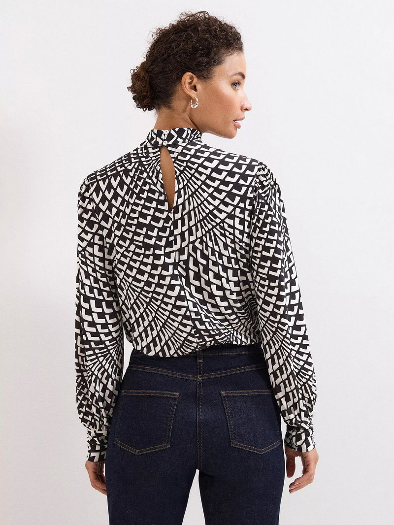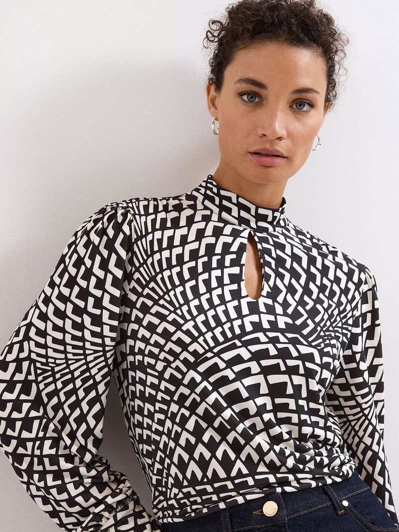 Isla Geometric Print High Neck Jersey Top