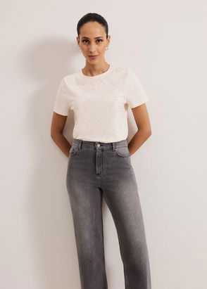 Add a touch of statement to your staple wardrobe with the Jada t-shirt. In a timeless shade that will pair effortlessly with all your favourite separates, this top is embellished with silver stud detailing in a diamond pattern. We style ours with our favourite denim and silver jewellery for a contemporary feminine look.