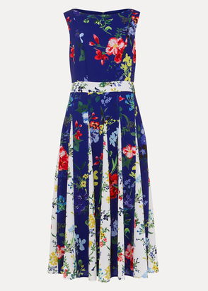 fit Part of our Limited Edition Heritage Collection.We looked back through our print archives to create this heritage floral print dress. Designed in a 1950s-inspired silhouette, the Janetta Dress features a striking cobalt blue floral print throughout and is framed by a square neckline and matching waist tie. We've added handy pockets to this style and empire seaming on the bodice to add shape.