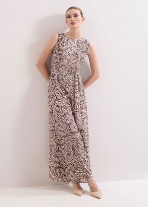 The Janine jumpsuit will slot seamlessly into your outfit rotation. With a smart shirt-style collar our sleeveless jumpsuit features a white and navy fan print that brings a contemporary edge. The refined pleats on the bodice and matching tie belt add considered detailing before falling through to a wide leg silhouette, perfect for an effortless day or night look.