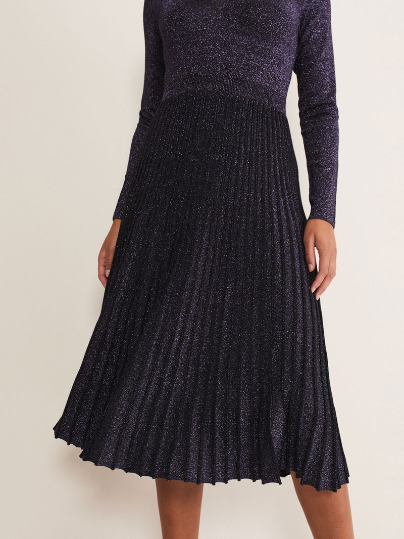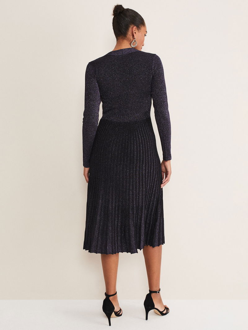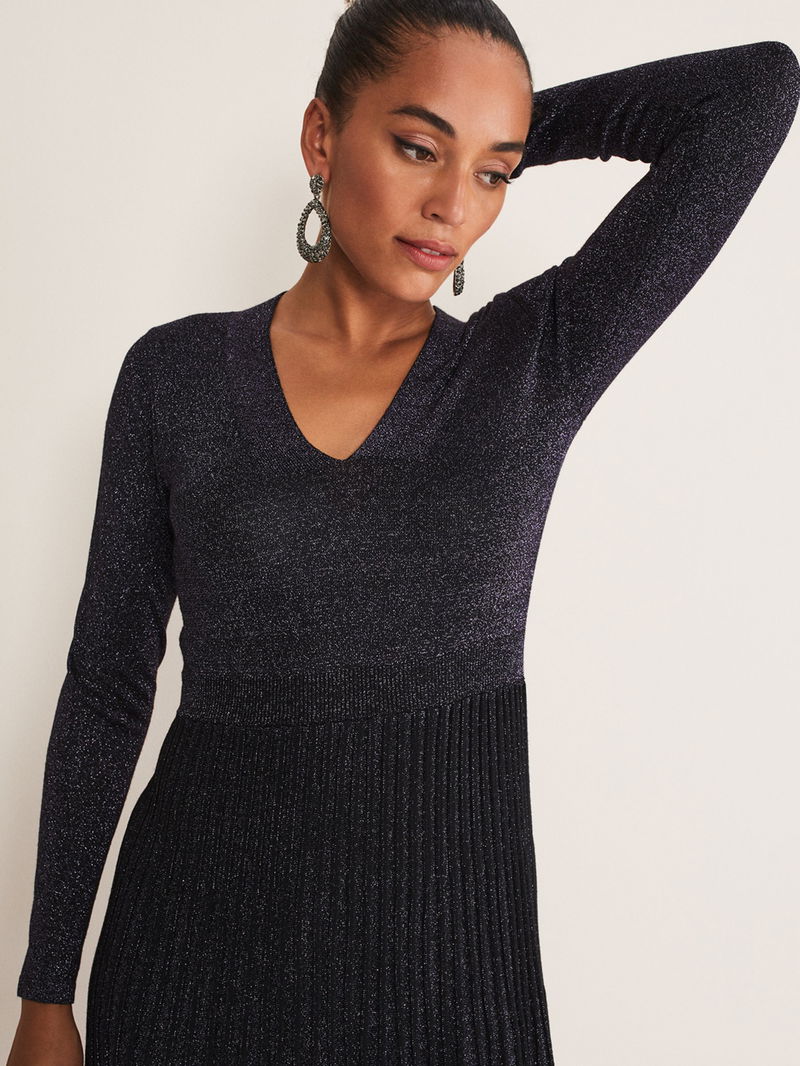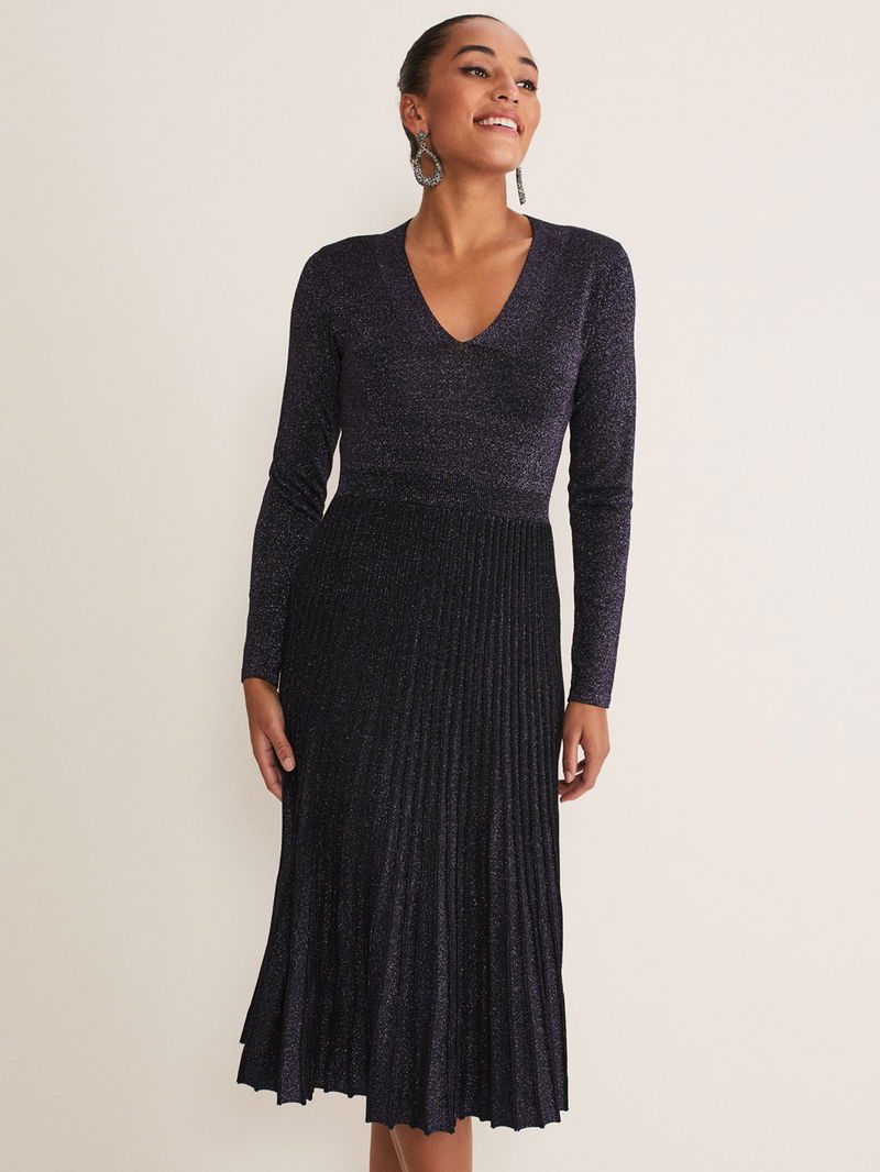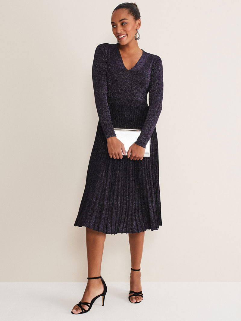 Designed with neat pleats throughout for added structure, this midi dress by Phase Eight features an eye-catching metallic shimmer. With a flattering v-neckline and long sleeves, this piece is a trusty choice to call on for parties.