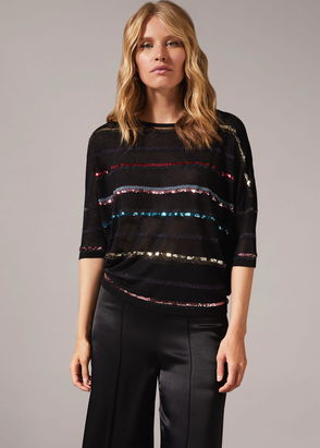 The party-ready top your wardrobe needs. Our Juanna top features all-over sparkle, long sleeves and a feminine V-neckline. It's perfect to wear with black wide leg trousers and heels to your next event.