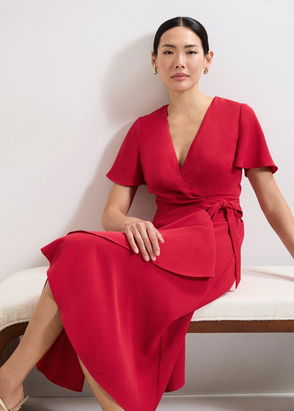 Our much-loved Julissa dress is back in a brand new bold colourway. A layered frill hem adds impact to this elegant wrap dress, which is framed by softly fluted sleeves and is finished with a matching waist tie to highlight your silhouette. Wear with silver accessories to complete your look.
