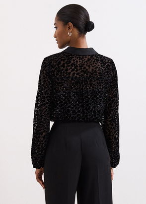 Refresh your new season styling with this contemporary black shirt. Updated with a semi-sheer check pattern for a stylish look it features blouson sleeves that add both volume and interest. Paired with denim or smart trousers it's sure to become a staple work to weekend style.