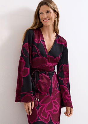 The Kenzia wrap dress is guaranteed to make an entrance. Designed in a rose print with metallic thread detailing, our dress features a feminine V-neckline, semi-sheer blouson sleeves and pleating throughout the bodice and maxi skirt. Detailing at the faux wrap bodice highlights the waist to create an elegant style, perfect for your next event.