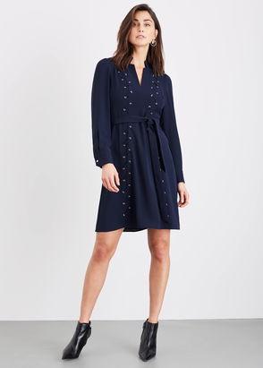 Take on this season's utility trend with this relaxed fit dress, designed with contemporary eyelet detailing and warm khaki shade. Perfect for spring/summer wear.