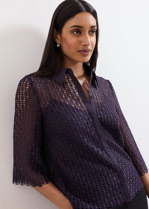 With an elevated lace design, our bold pink top features long sleeves and a slim fit. It's perfect to mix and match with all your separates this season.