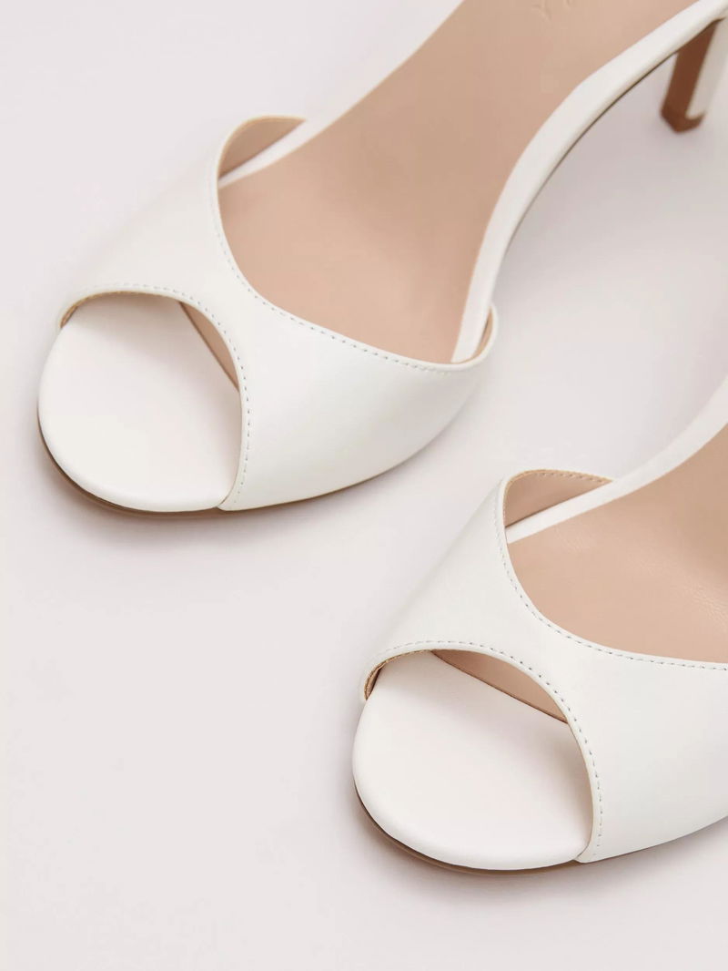 Designed in a versatile cream shade and made from 100% leather, these heels feature buckle fasteners at the ankle, a closed back and an elegant open toe. Style with matching accessories for the perfect occasion-ready look.